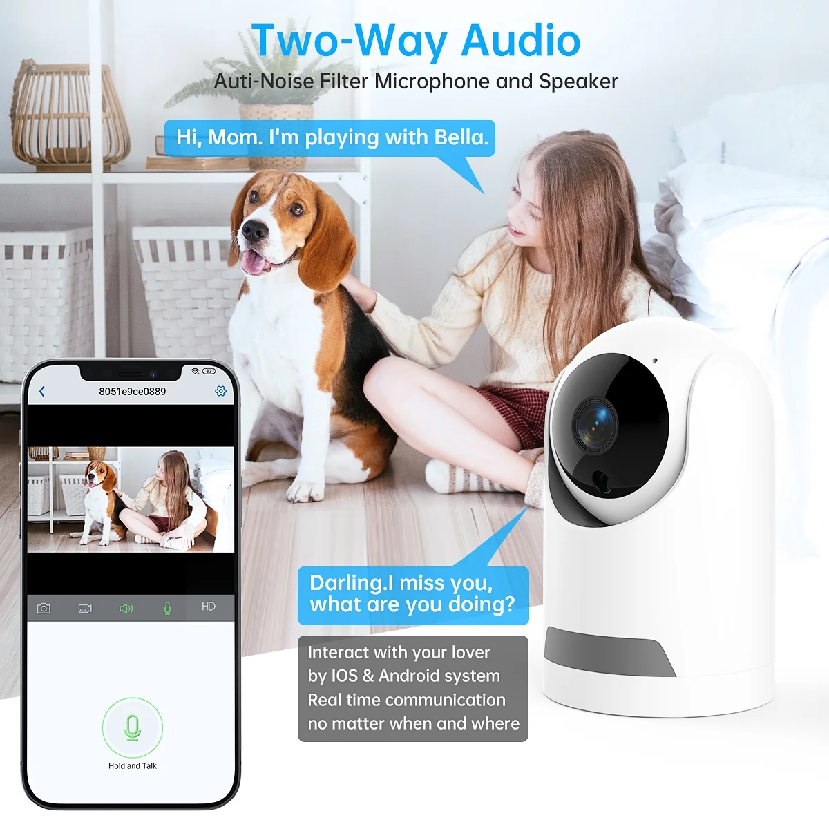 Connect this home security camera to your phone and view live video or playback at any time and anywhere. Turn on notification on your phone to receive the instant alert for which you cared. Home camera supports Multi-users to view simultaneously on App. No matter where you go, you could share your surveillance camera with friends and family for good moments.