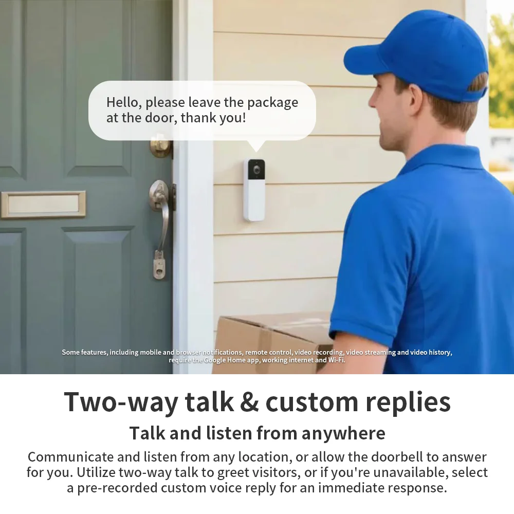 - Two-Way Talk: Talk and listen from anywhere using the Google Home app to check in with family, calm a pet, or address an unexpected visitor directly from your phone.