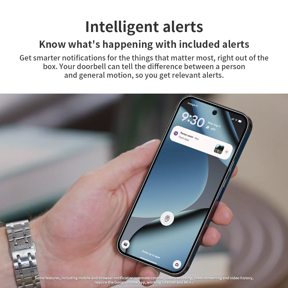 - 3 Some features, including mobile and browser notifications, remote control, video recording, video streaming and video history, require the Google Home app and working internet and Wi-Fi.