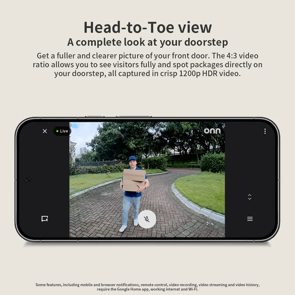 - Head-to-Toe View: See a complete and clearer picture of your front door. The 4:3 video ratio provides a taller, head-to-toe view so you can see visitors fully and spot packages right on your doorstep, all in crisp 1200p HDR video.